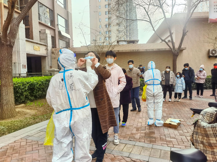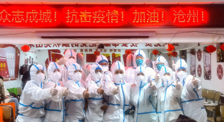 疫情初期每天都是入戶檢測,32層樓,共計200多人的檢測耗時接近一天。每天除了爬樓和不能坐的辛苦外,為了節(jié)省隔離服,大家都是不吃不喝不上廁所,天氣熱的時候全身濕透,天氣冷的時候凍的手都沒有知覺,雖然很辛苦,但大家依然在堅守。